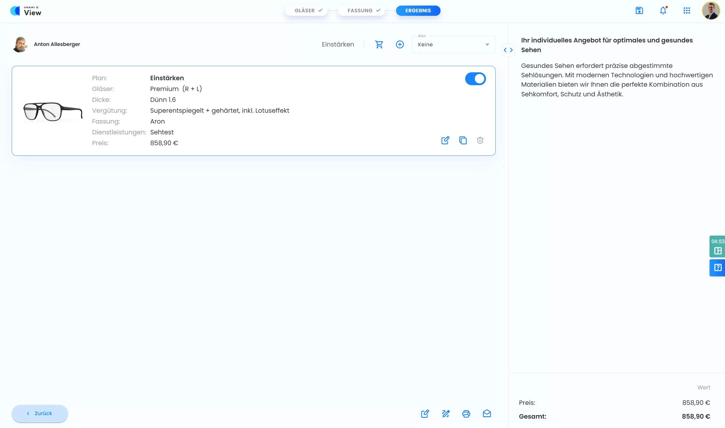Umami View bietet ein modulares System digitaler Tools für jeden Schritt im Beratungsprozess eines Augenoptikers – vom Erstkontakt über die Bedarfsanalyse bis hin zur Nachbetreuung und Kundenbindung. Herzstück dieses digitalen Ökosystems ist die Gläser App 2.0, die speziell auf die komplexe und oft erklärungsbedürftige Glasberatung ausgerichtet ist.